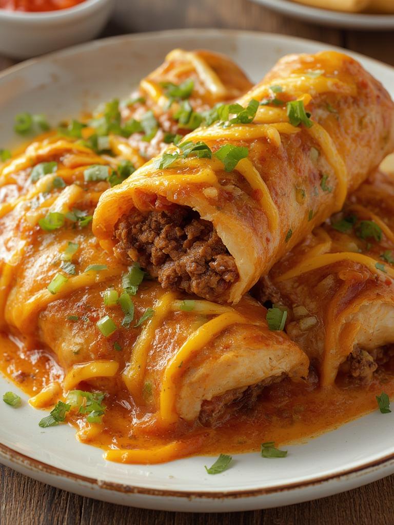 Spoon a generous amount of the beef and cheese mixture onto the center of each tortilla. Fold in the sides and roll it up tightly, ensuring the filling is securely enclosed. Repeat with the remaining tortillas.